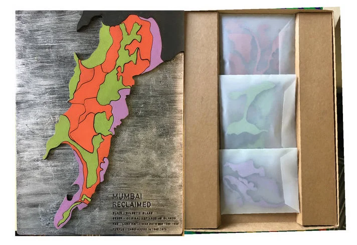 Packaging and products based on and having Bombay as the central theme and eccentric aspects of the City — Sea link Lamp based on the Sea Link Bridge in Mumbai and A puzzle based on the growth of Mumbai and how it was reclaimed. Branding and Layout Design for the products.