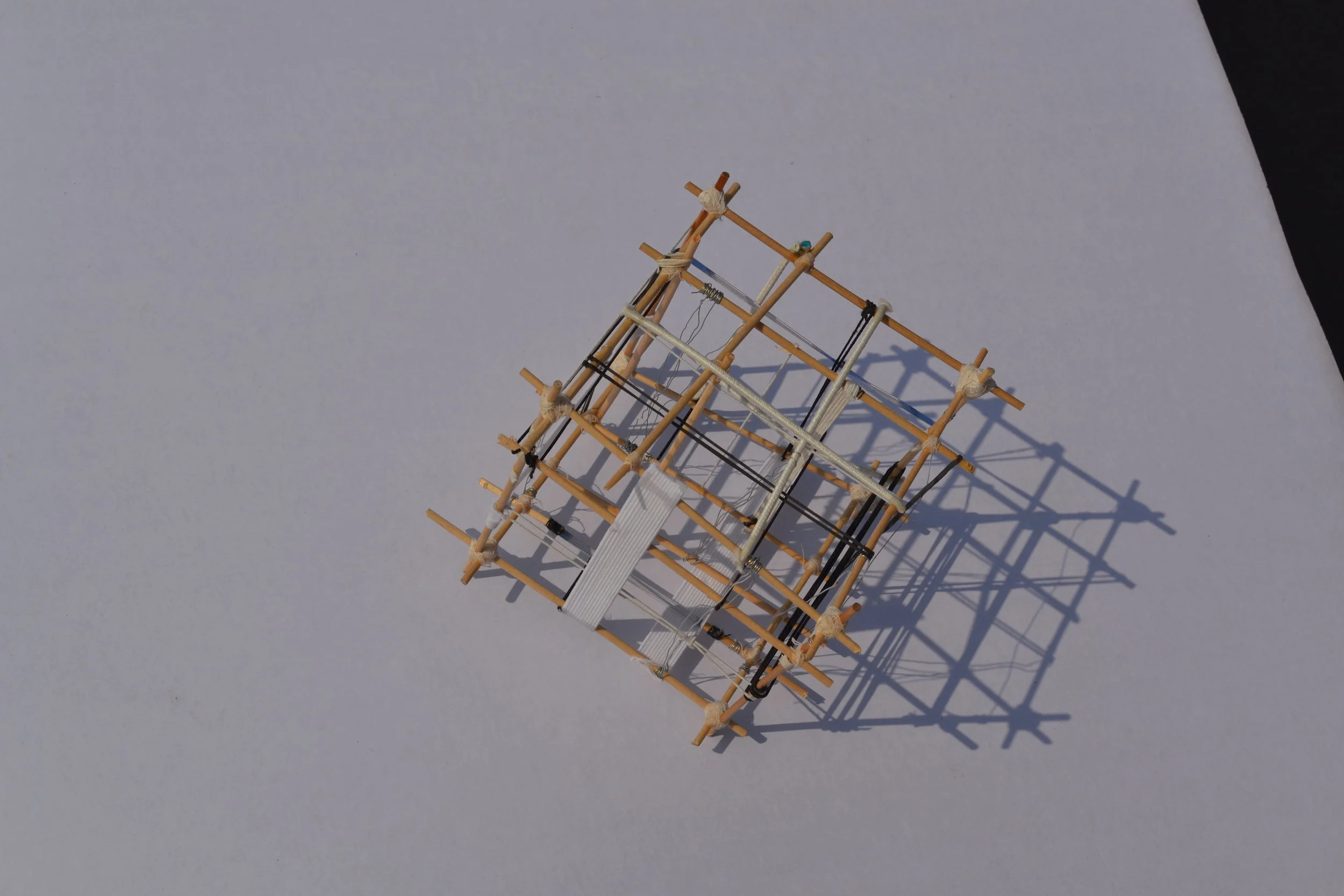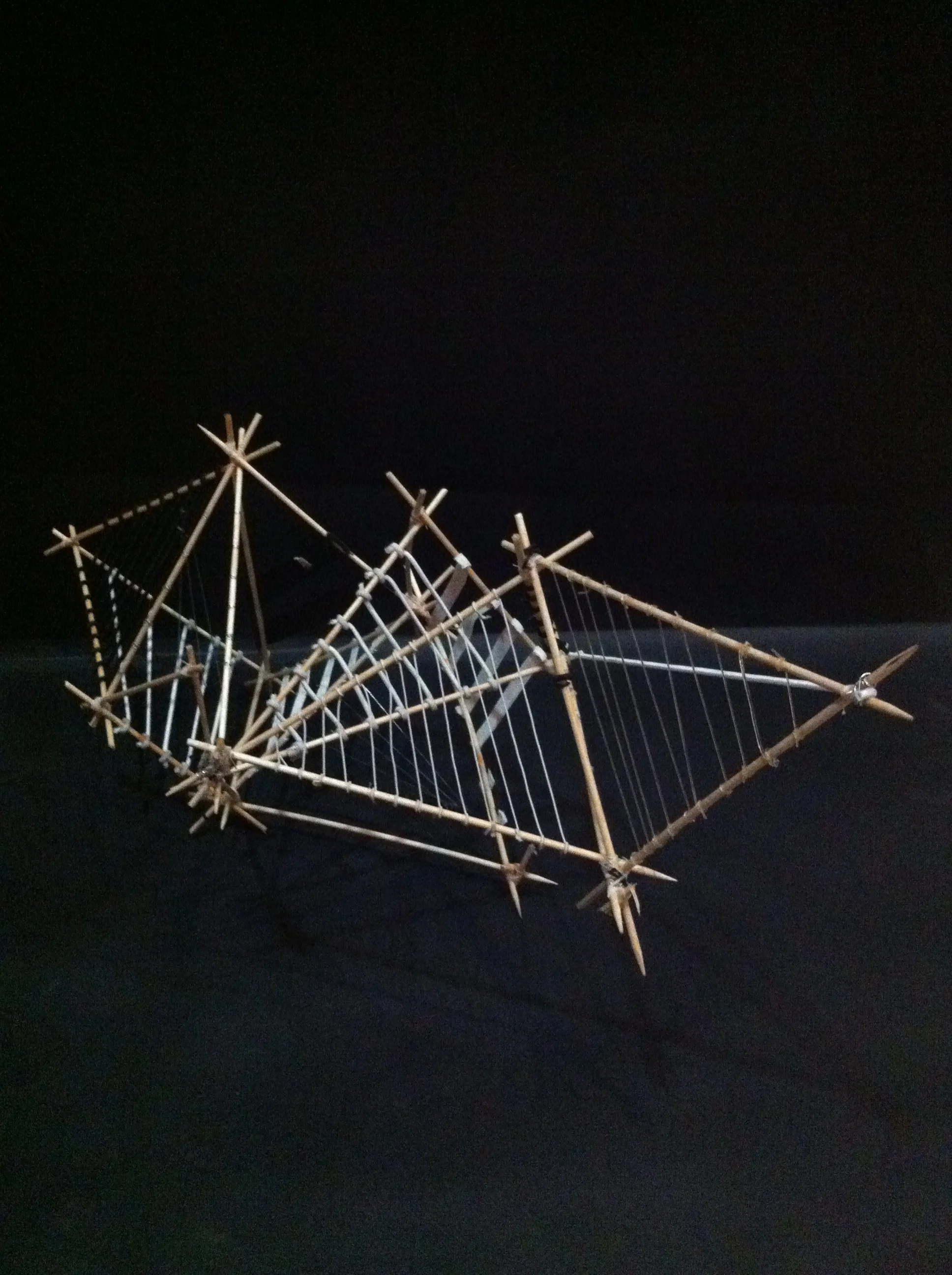 I studied the different sound vibrations that were felt at the site, and then made an abstract representation using materials like bands, wires, threads, sticks. Trying to depict the calm/stillness or disturbance through the elasticity or rigidity that each of the materials possess.